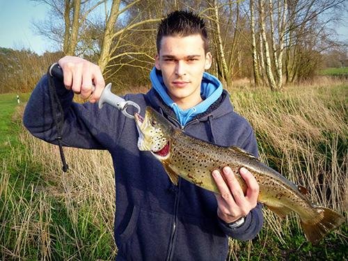 | Datum: 19.03.2022 Angler: Leonard Lilienthal Gewässer: NWA Fisch: Bachforelle Gewicht: 786 g Länge: 41 cm Köder: Wobbler