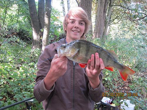 | Datum: 07.10.2012 Angler: Dennis Flohre Gewässer: Hase Fisch: Barsch Gewicht: 940 g Länge: 41 cm Köder: Rotauge