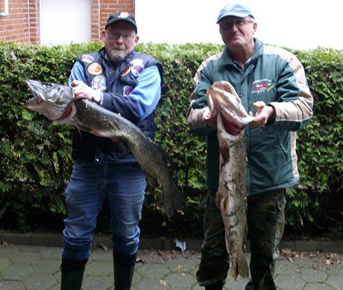 | Datum: 20.05.2013 Angler: M. Paerschke und U. Kamp Gewässer: Hunte Fisch: Hechte Gewicht: 9000 / 7500 g Länge: 112 / 104 cm Köder: Köderfisch Vermerk: Beide Hechte wurden innerhalb von einer halben Stunde, innerhalb von 50 Metern Gewässerstrecke gefangen.