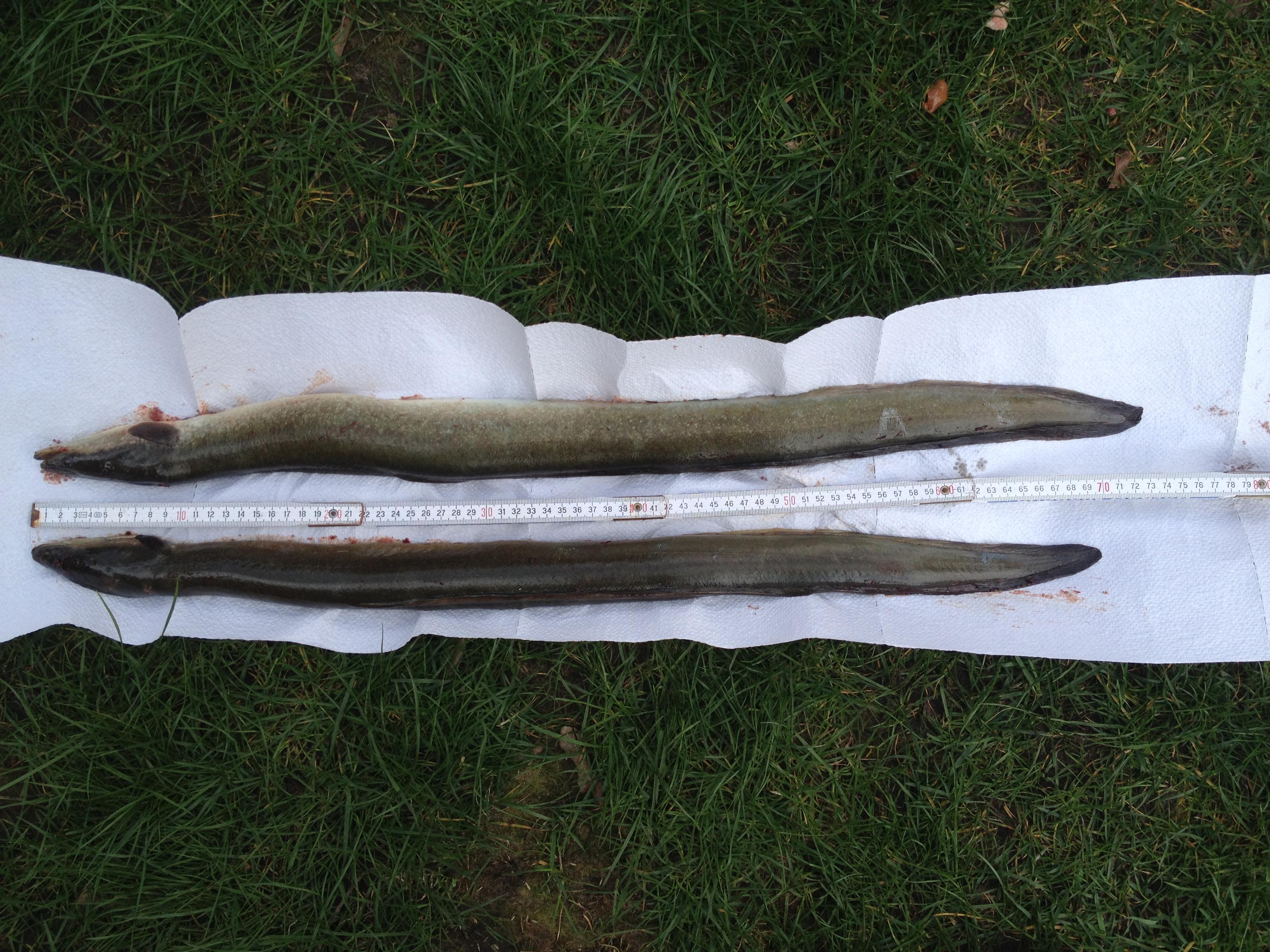 | Datum: 10.04.2015 Angler: Michael Ortmann Gewässer: Hase Fisch: 2 Aale Gewicht: 600 / 780 g Länge: 70 / 73 cm Köder: Wurm