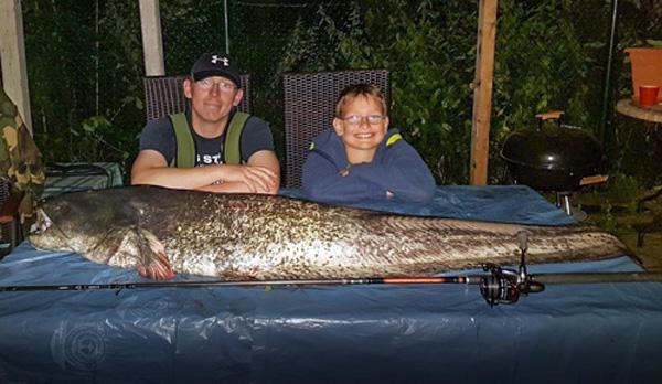 | Datum: 12.07.2017 Angler: Fabian Fröchtenicht Gewässer: Rubbenbruchsee Fisch: Wels Gewicht: 40.200 g Länge: 165 cm Köder: Gummifisch