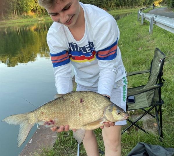 | Datum: 30.07.2020 Angler: Paul Frerichs Gewässer: Mittellandkanal Fisch: Brasse Gewicht: 2.900 g Länge: 58 cm Köder: Wurm