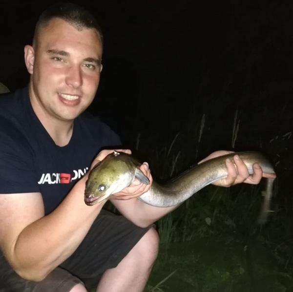 | Datum: 19.06.2021 Angler: Tomas Berliner Gewässer: NWA Fisch: Aal Gewicht: 765 g Länge: 78 cm Köder: Bedena Wurm