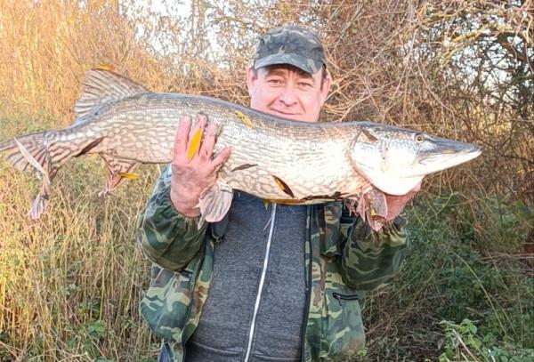 | Datum: 22.11.2021 Angler: Nikolay Dil Gewässer: Hunte Fisch: Hecht Gewicht: 11200 g Länge: 110 cm Köder: Gummifisch