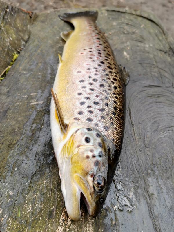 | Datum: 02.07.2017 Angler: Romero G Hart Gewässer: Düte Fisch: Bachforelle Gewicht: 1.200 g Länge: 46 cm Köder: Spinner