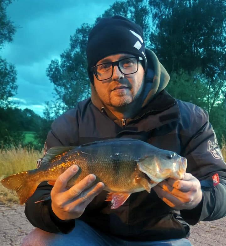 | Datum: 16.08.2021 Angler: Artur Graf Gewässer: NWA Fisch: Schleie Gewicht: 2.000 g Länge: 50 cm Köder: Made