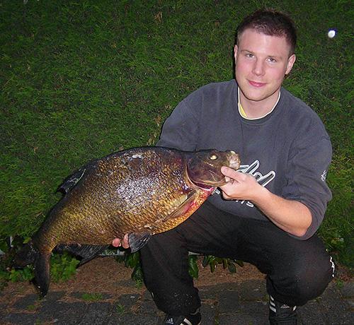 | Datum: 24.06.2012 Angler: Sven Lübbert Gewässer: Alfsee Fisch: Brasse Gewicht: 6.950 g Länge: 74 cm Köder: Dendrobenas (Würmer) Vermerk: Nachts um 2 Uhr auf Feeder Rute gefangen. Laut Blinker und fisch-hitparade die bis lang schwerste Brasse des Jahres in Deutschland.